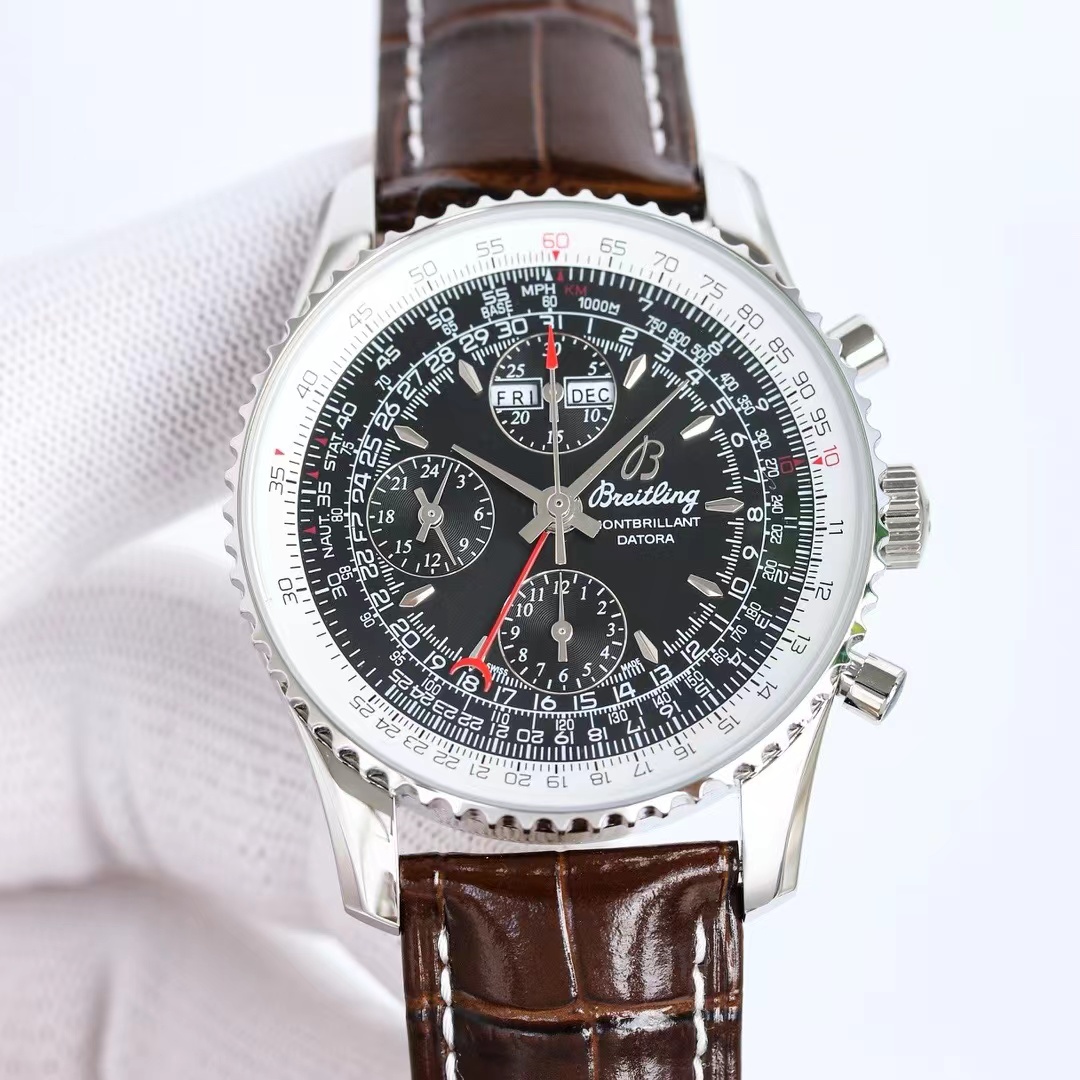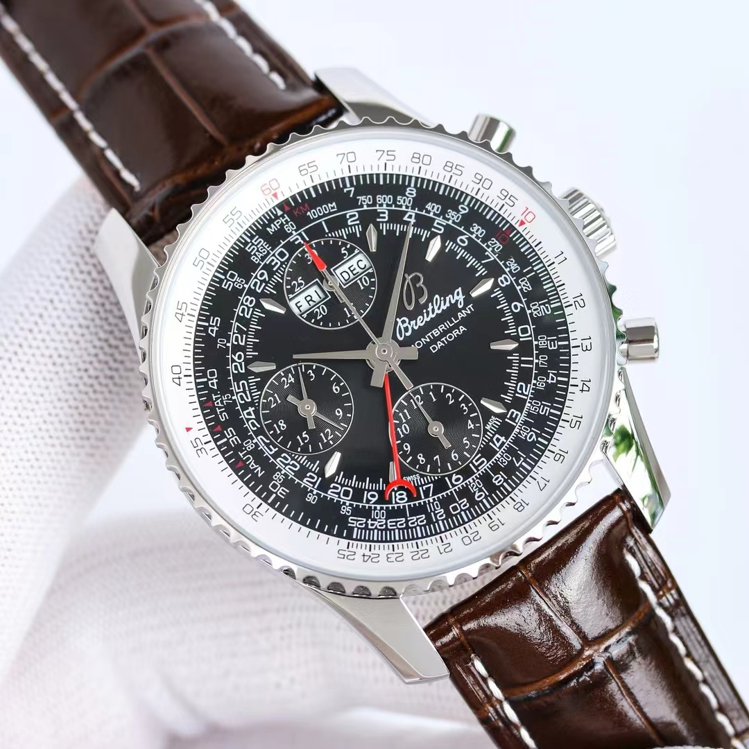 The history of Breitling watchesIn founding his workshop in the Swiss Jura in 1884, Léon Breitling chose to devote himself to an exclusive and demanding field: that of zhronographs and timers. These precision instruments were intended for sports, science and industry. Thanks to its high-quality products and its constant quest for innovation, the brand accompanied the boom of competitive sports and of the automobile – as well as the first feats of the aviation pioneers. In 1915, Breitling heralded the emergence of the wrist chronograph by inventing the first independent chronograph push piece. In 1923, the firm perfected this system by separating the stop/start functions from that of resetting. This patented innovation thereby made it possible to add several successive times without returning the hands to zero – which proved extremely useful both for timing sports competitions and for calculating flight times. In 1934, Breitling set the final touch to the modern face of the chronograph by creating the second independent reset push piece – a decisive breakthrough that was soon adopted by the competition. In 1952, Breitling launched its legendary Navitimer wrist chronograph featuring a circular slide rule serving to perform all navigation-related calculations.