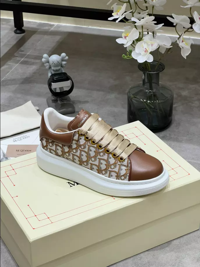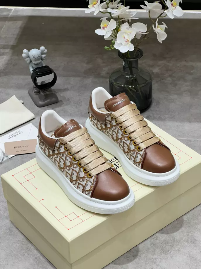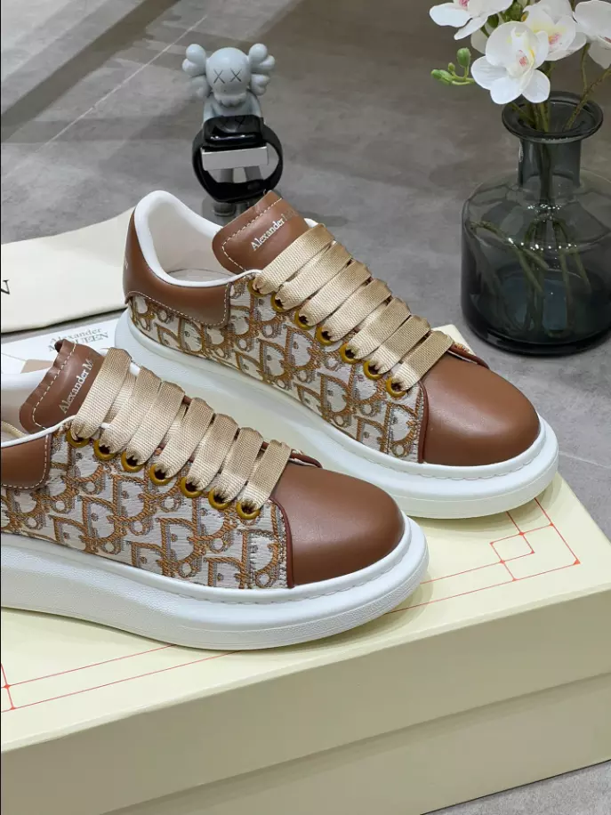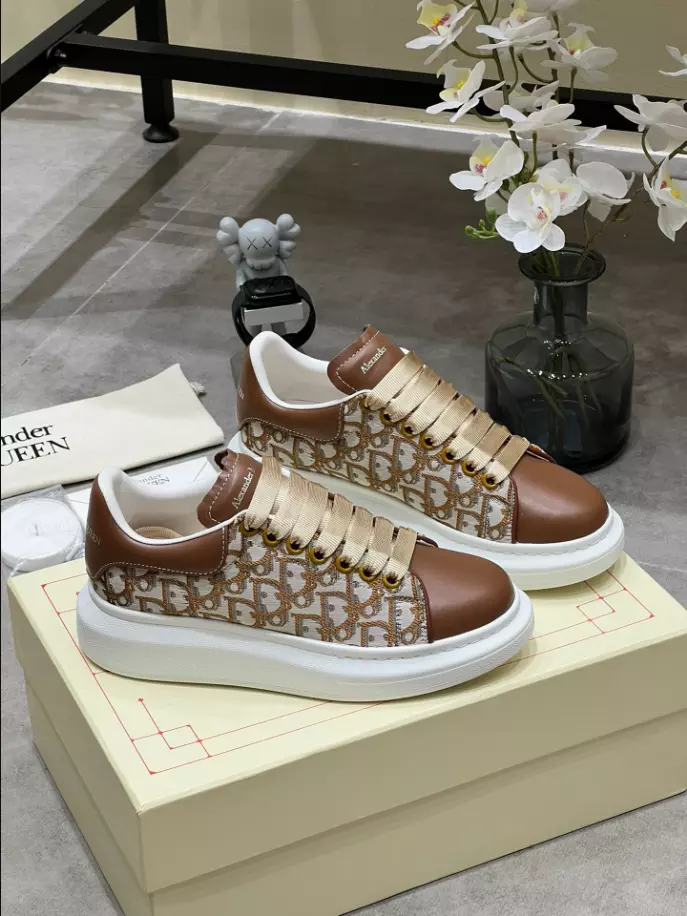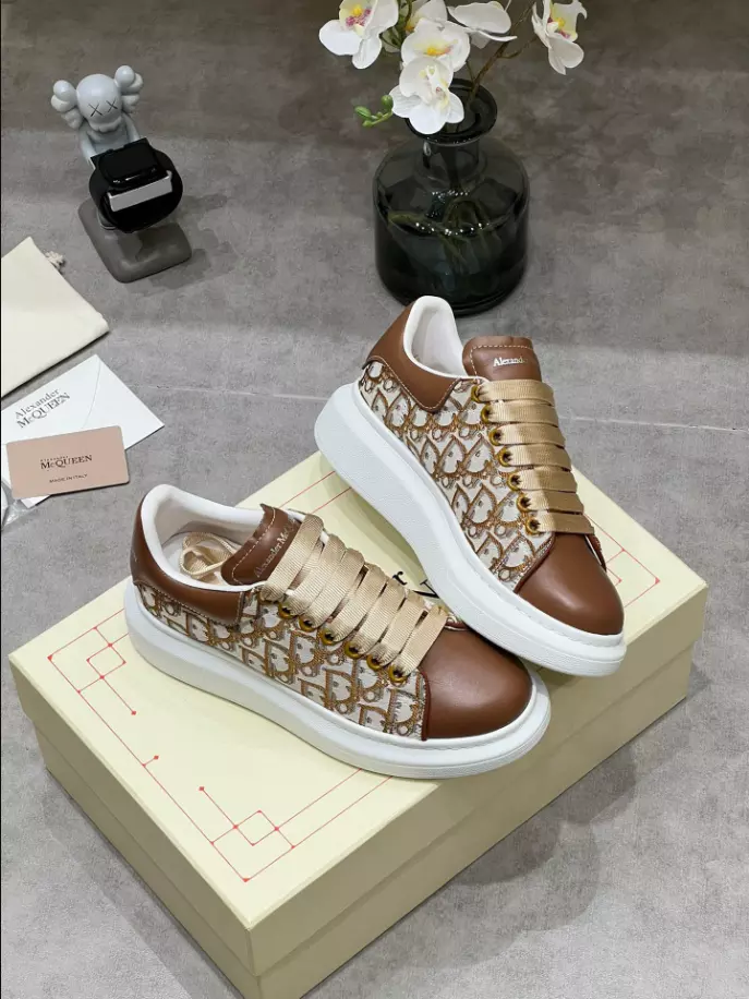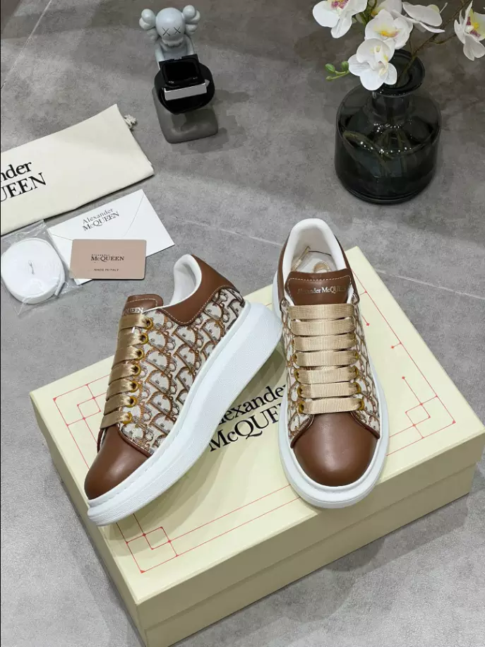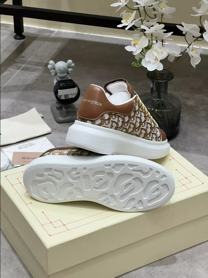 Alexander McQueen Oversized Sneaker – Classic smooth white calfskin lace-up sneaker with oversized rubber round toe and black rear details. Ventilated hole details on sneaker. Leather lining and 7-hole metal eyelets. Large flat laces feature Alexander McQueen logo on tongue and back. Super large rubber sole.