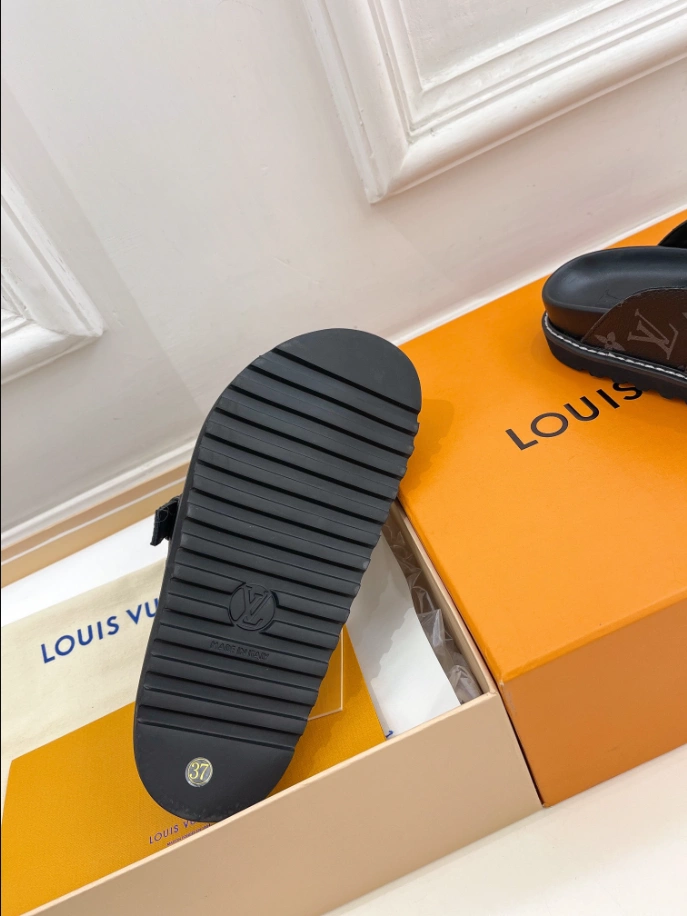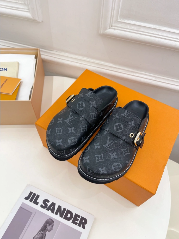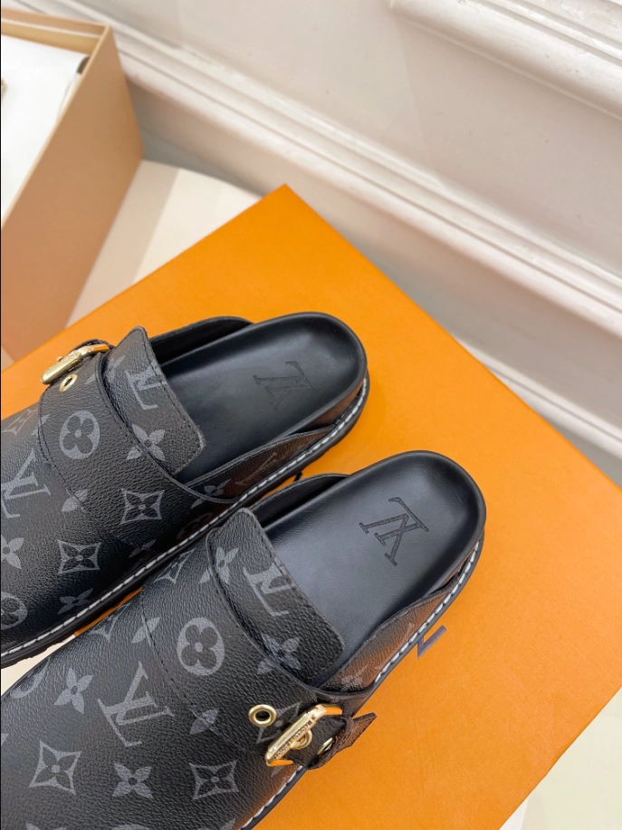 The LV Cosy Flat Comfort Clogs offer effortless style for everyday wear. This version is crafted from glossy Monogram canvas with an adjustable strap and gold-tone buckle. It features an anatomical footbed and an ultra-lightweight micro outsole.