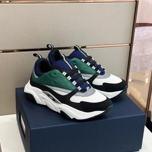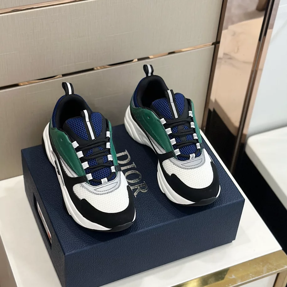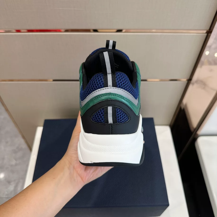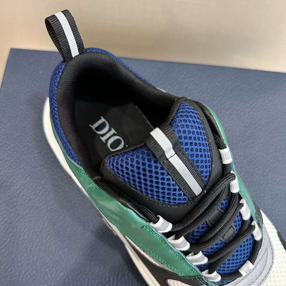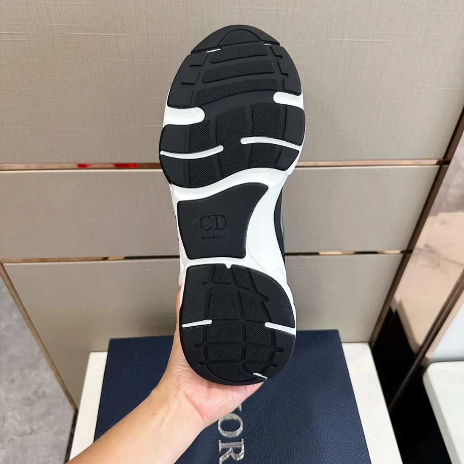 The B22 sneaker is not just a fashion item but a sophisticated blend of elegance and practicality. With a design that echoes classic running aesthetics. it features high-tech materials such as breathable mesh and soft leather crafted with meticulous welding technology. A standout feature is the boldly undulating midsole. prominently displaying the Dior Homme logo. along with refined calfskin pull tabs on the heel and tongue. ensuring both luxury and convenience for the wearer.