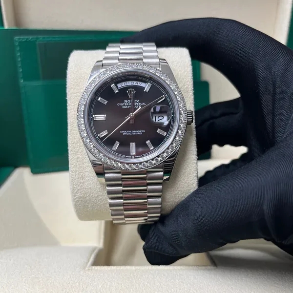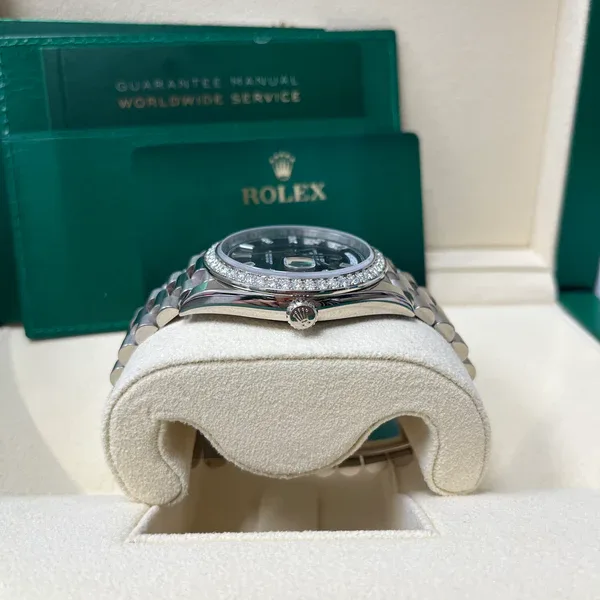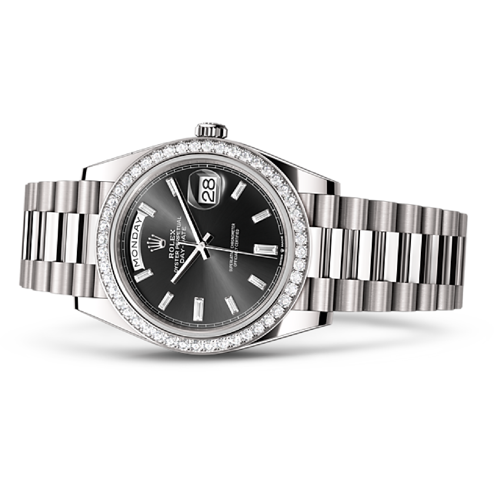 Gem-setters, like sculptors, finely carve the precious metal to hand-shape the seat in which each gemstone will be perfectly lodged. With the art and craft of a jeweller, the stone is placed and meticulously aligned with the others, then firmly secured in its gold or platinum setting. Besides the intrinsic quality of the stones, several other criteria contribute to the beauty of Rolex gem-setting: the precise alignment of the height of the gems, their orientation and position, the regularity, strength and proportions of the setting as well as the intricate finishing of the metalwork. A sparkling symphony to enhance the watch and enchant the wearer