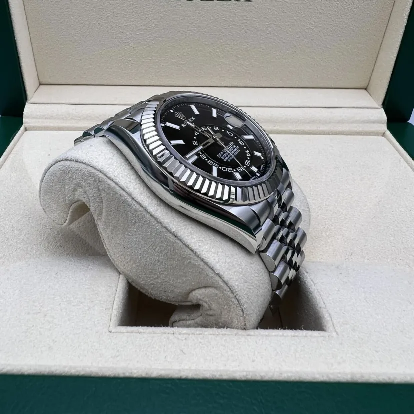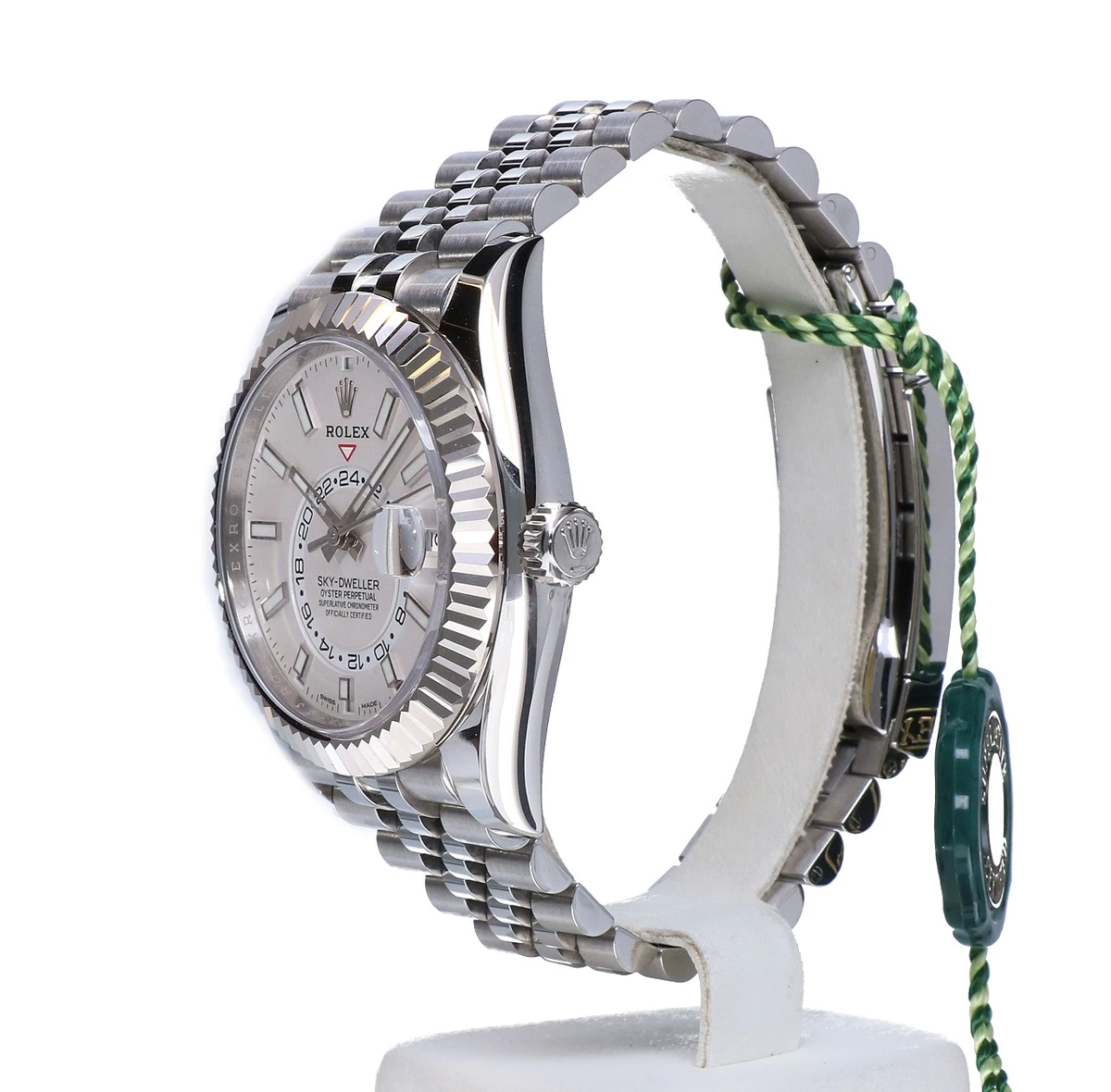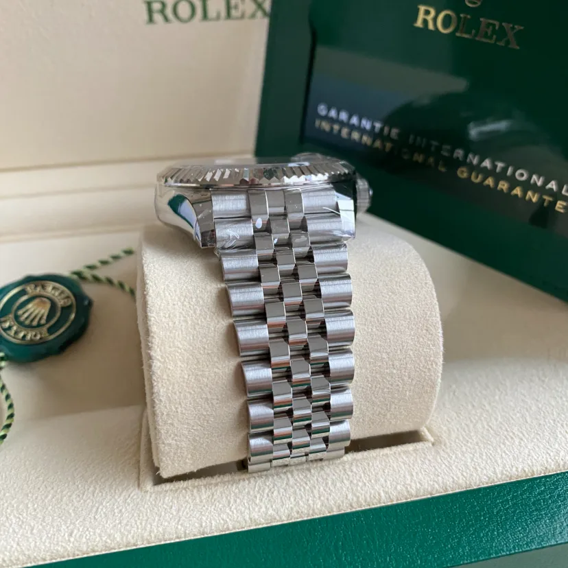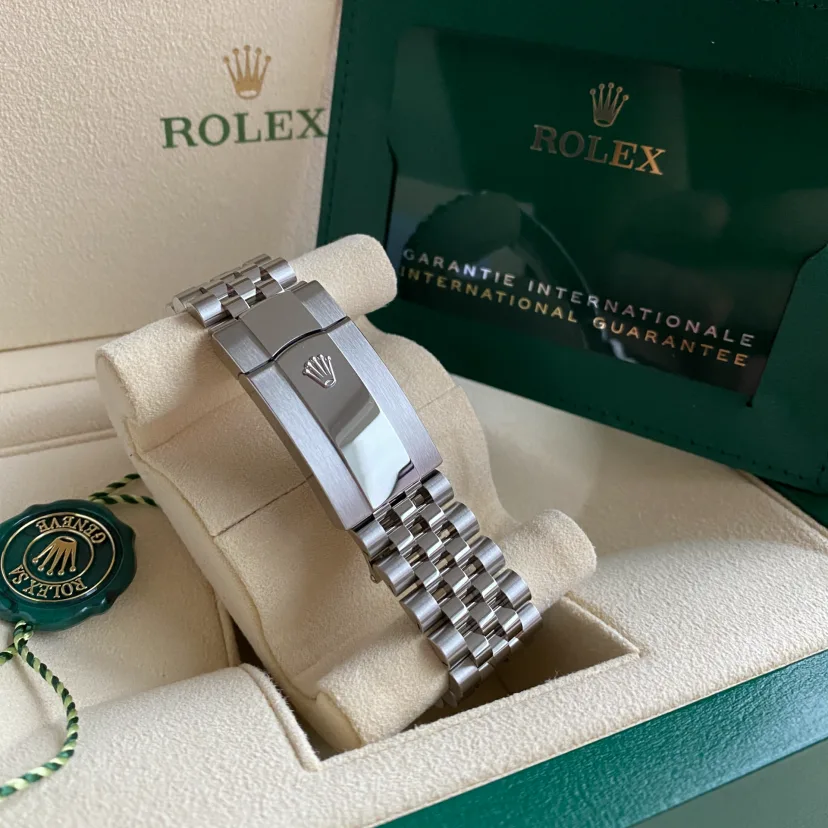 The Jubilee bracelet on these watches is equipped with a folding Oysterclasp and features the Easylink comfort extension link, developed by Rolex, which allows the wearer to easily adjust the bracelet length by approximately 5 mm. The bracelet also includes patented ceramic inserts – designed by the brand – inside the links to enhance its flexibility on the wrist and its longevity.