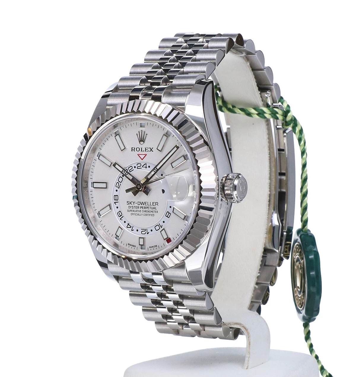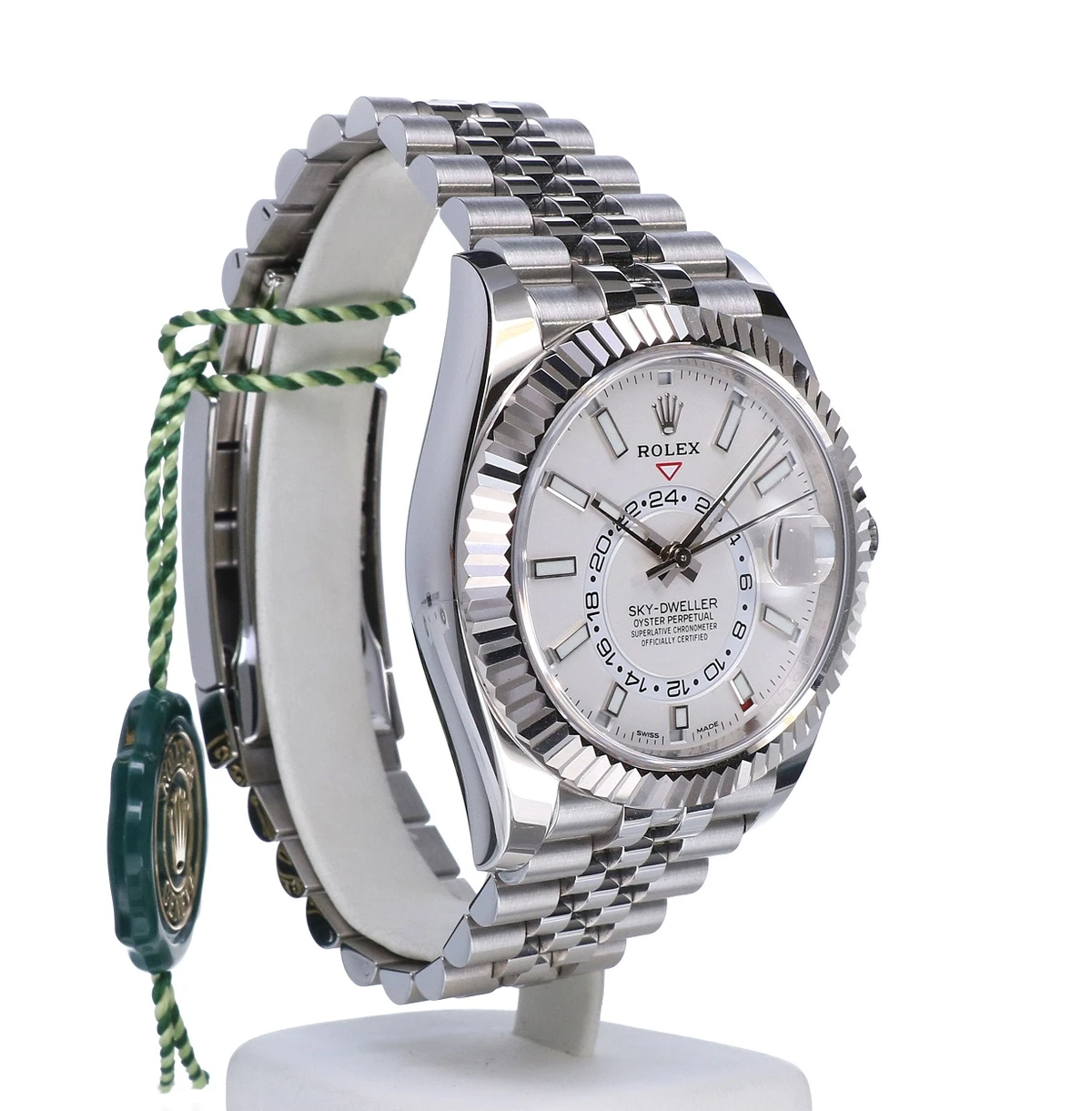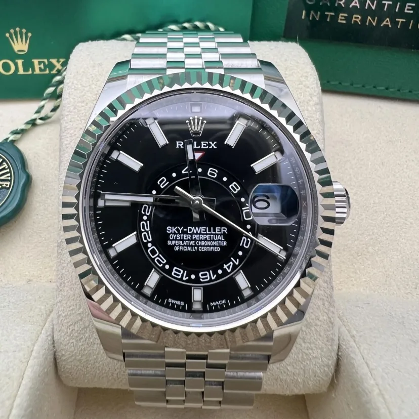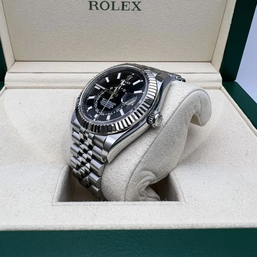 The Jubilee bracelet on these watches is equipped with a folding Oysterclasp and features the Easylink comfort extension link, developed by Rolex, which allows the wearer to easily adjust the bracelet length by approximately 5 mm. The bracelet also includes patented ceramic inserts – designed by the brand – inside the links to enhance its flexibility on the wrist and its longevity.