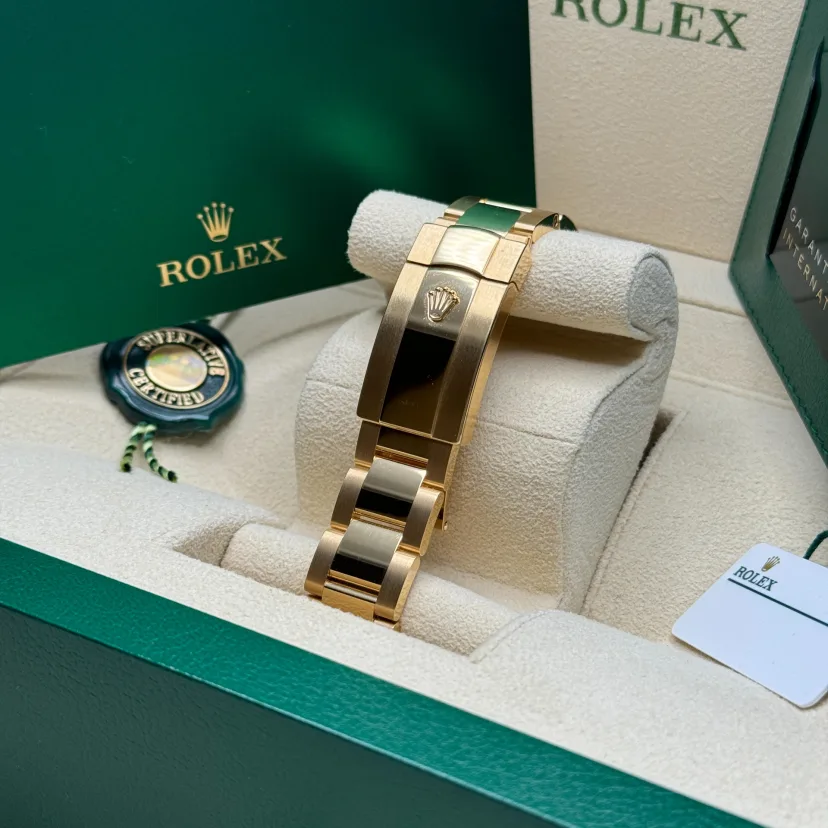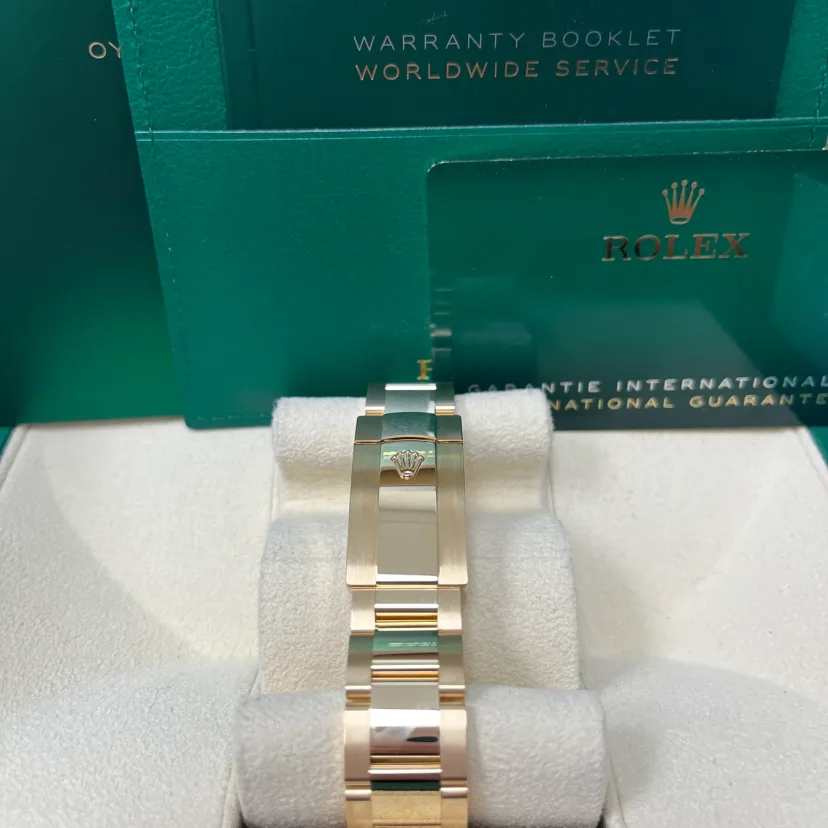 The Rolex fluted bezel is a mark of distinction. Originally, the fluting of the Oyster bezel had a functional purpose: it served to screw the bezel onto the case helping to ensure the waterproofness of the watch. It was therefore identical to the fluting on the case back, which was also screwed onto the case for waterproofness, using specific Rolex tools. Over time, the fluting became an aesthetic element, a genuine Rolex signature feature. Today the fluted bezel is a mark of distinction, always in gold.