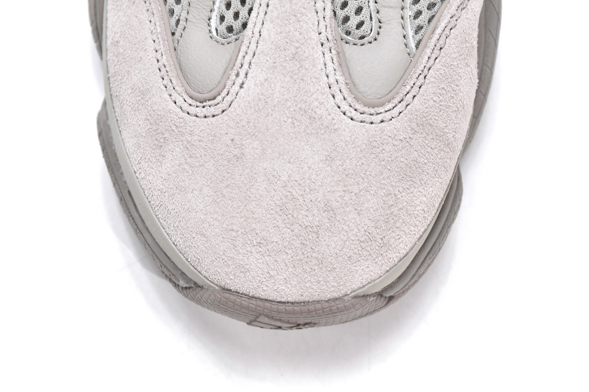 Adidas Yeezy 500 Ash Grey pairs an austere color palette with a ventilated build. A neutral greyscale finish is applied to the lifestyle runner. highlighted by an open mesh upper with premium cow suede overlays. A rubber-wrap mudguard provides abrasion-resistant durability. while 3M reflective piping offers added visibility in low-light conditions. The sneaker rides on an adiPRENE+ midsole. rendered in a dark taupe finish and featuring podular construction modeled after adidas' retro Feet You Wear technology.